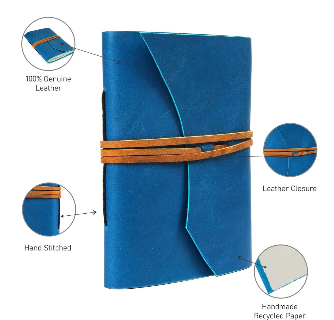 - Hand Made from 100% recycled paper. Features 100% genuine cowhide leather cover for the journal.